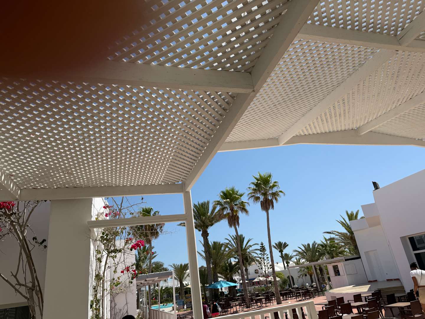 Der Blick von der Terrasse zum ersten Pool im Meninx