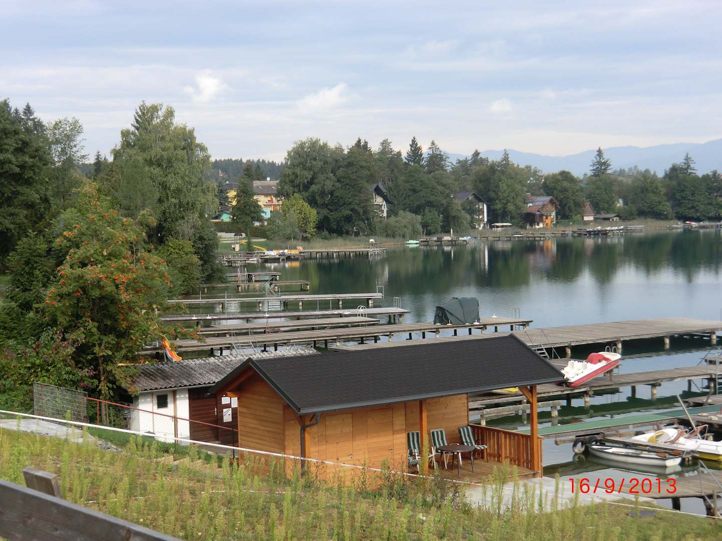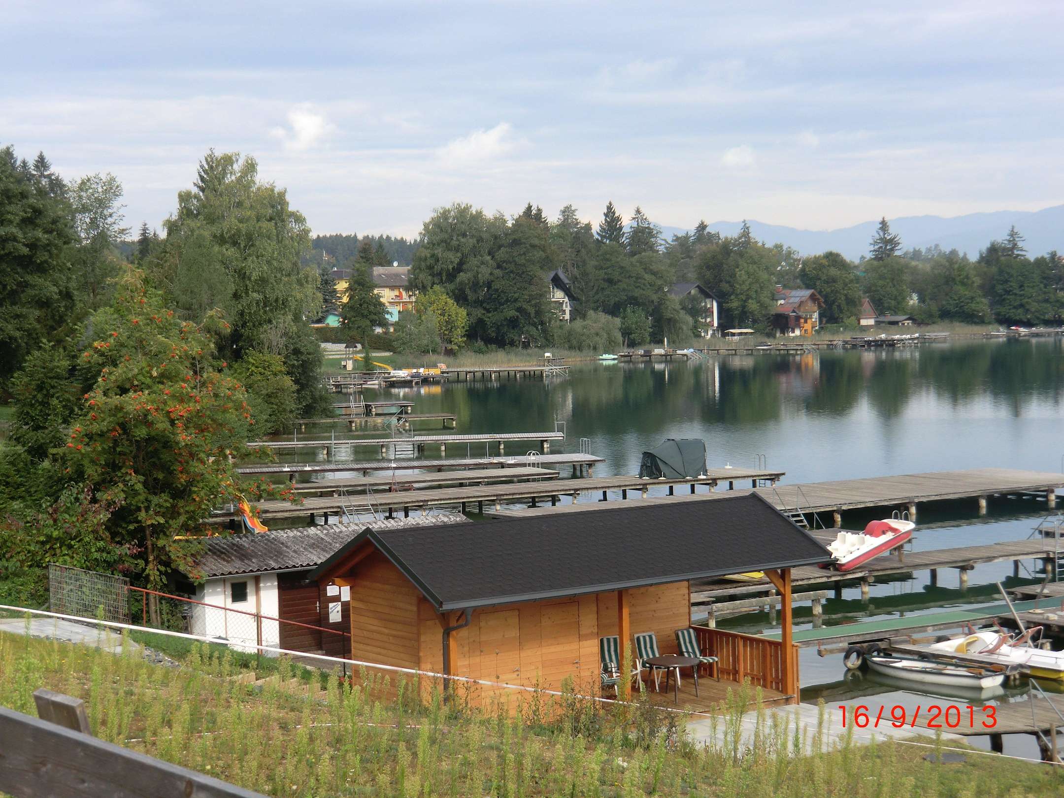 Blick auf die Privatstrände am See