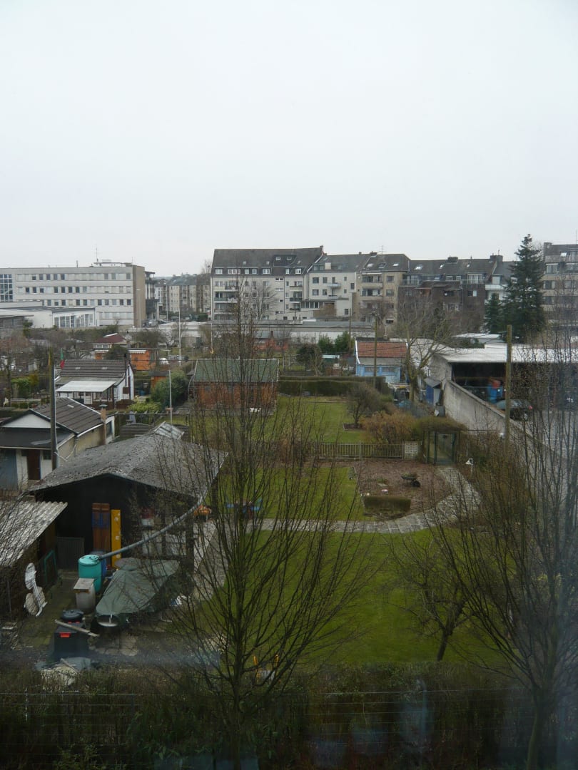 Ausblick aus dem Zimmer in die Kleingartenanlage