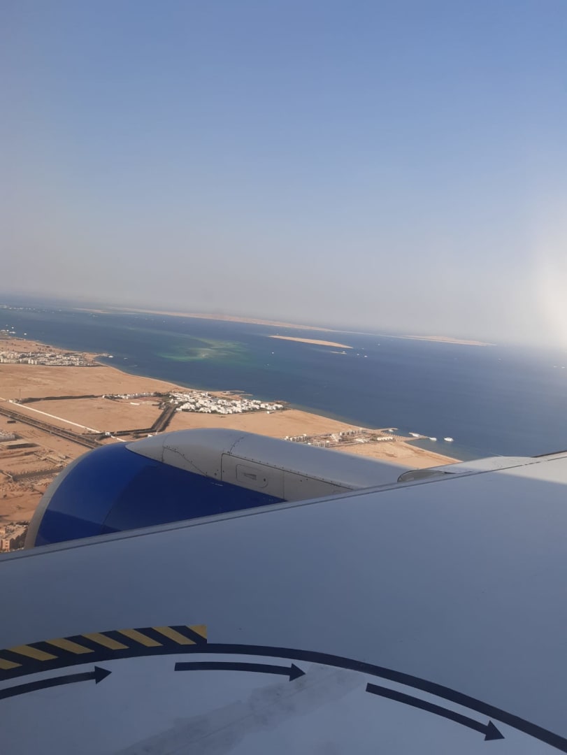 Blick aus dem Flugzeug auf die Hotelanlage "Mercure".