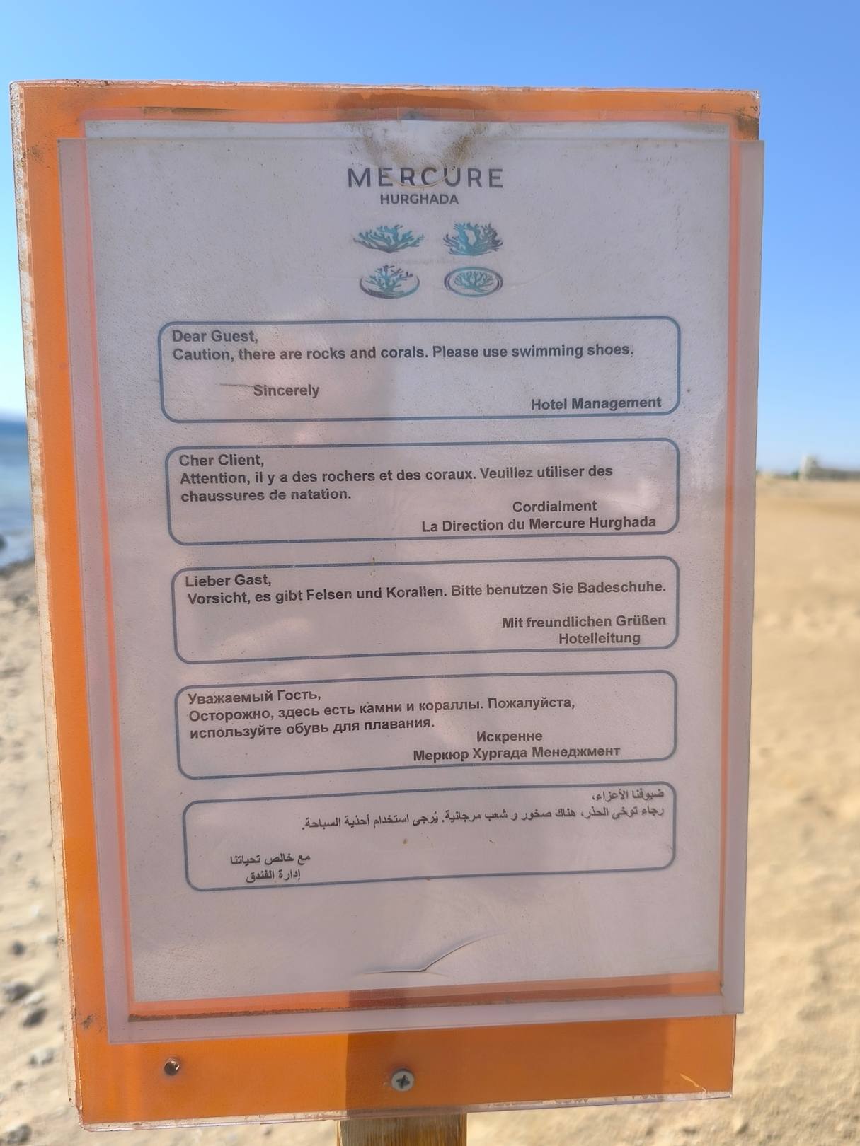 Hinweis am Strand