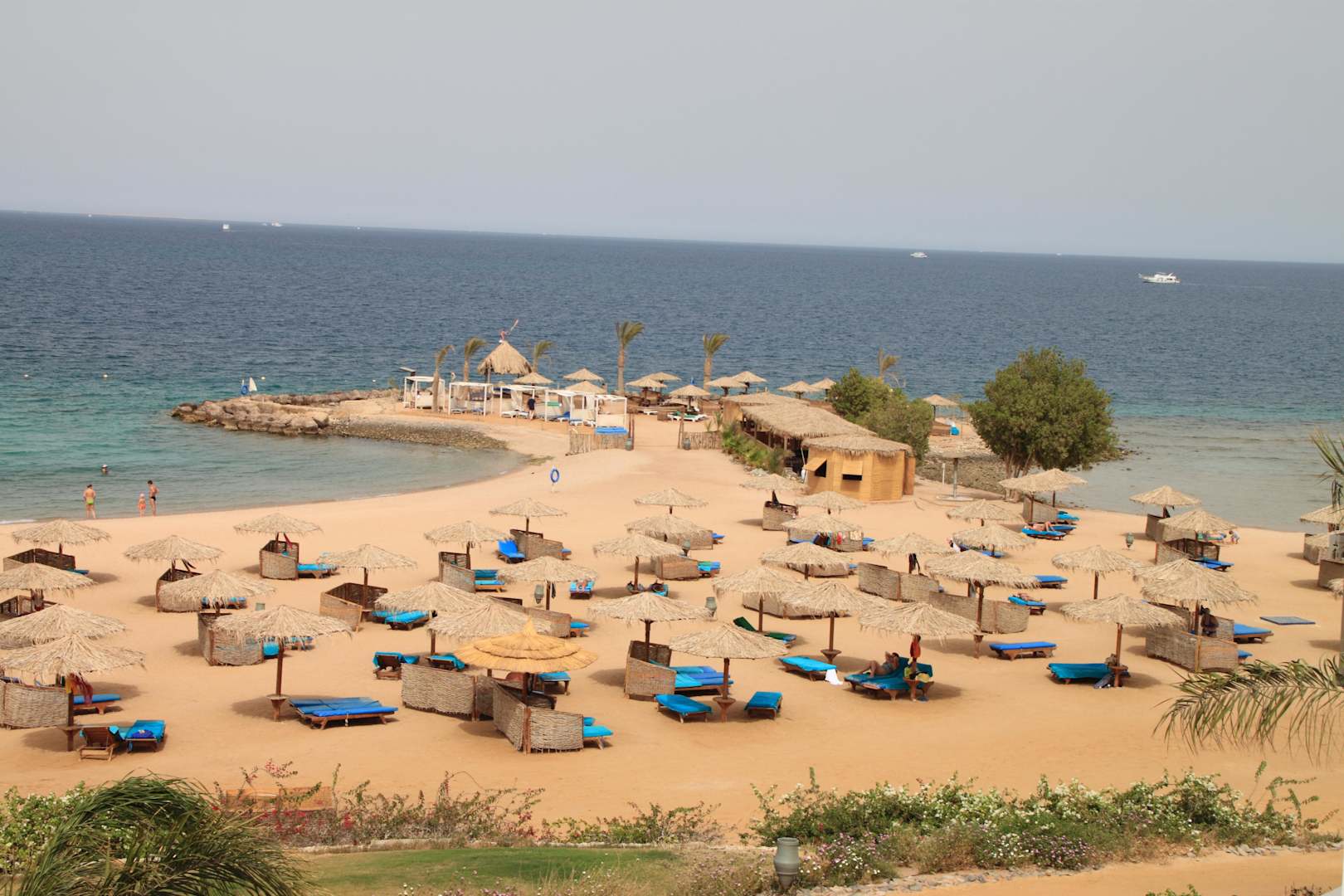 Blick auf den Hotelstrand vom Balkon