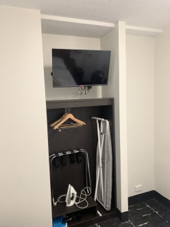 Unser Zimmer mit TV, Kleiderbügel sowie Bügelbrett ausgestattet