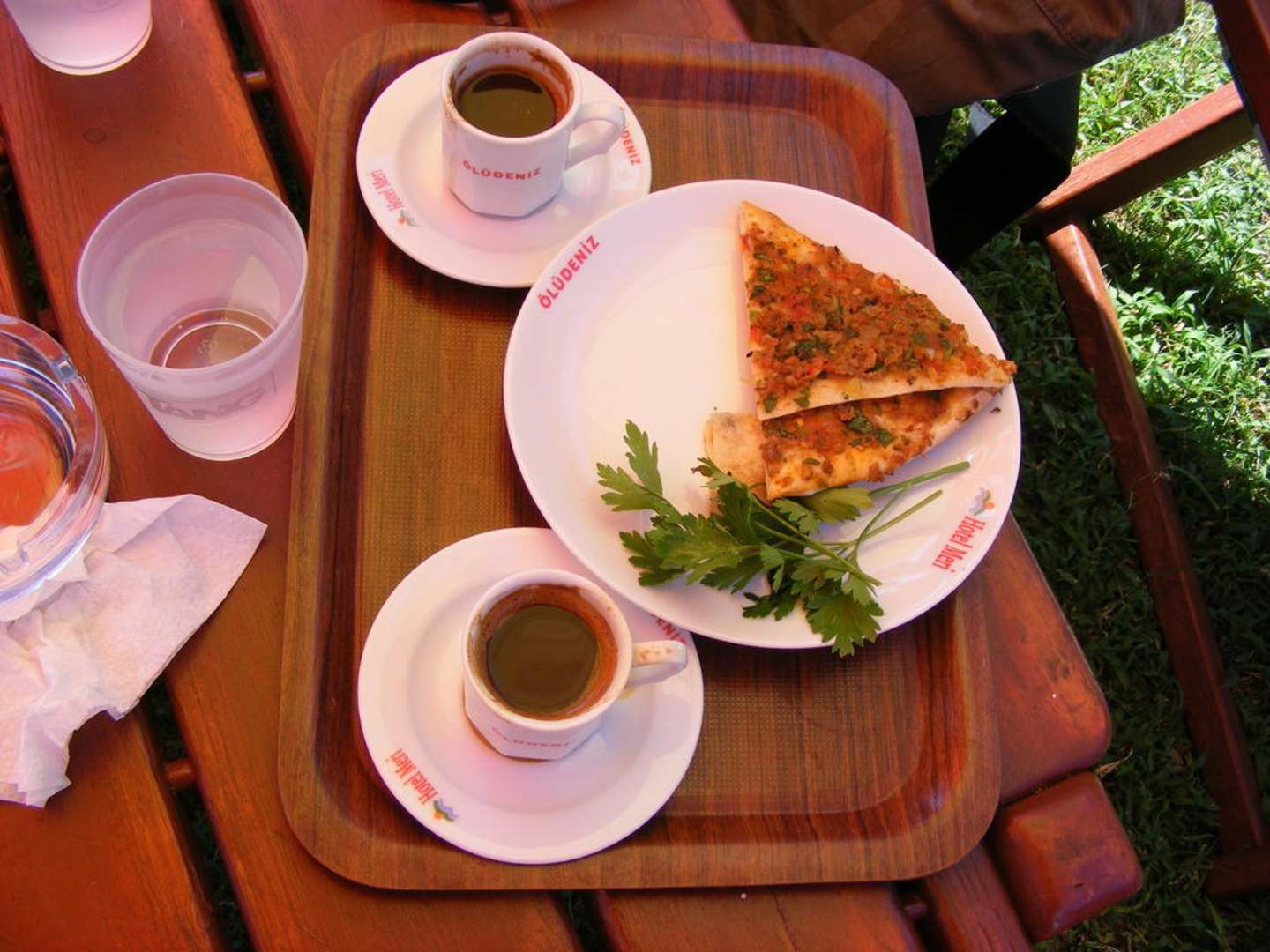 türkischer Kaffee kostet 3 TL pro Person und ist sehr frisch und lecker zubereitet, wenn man etwas von den Nachmittags-Snack abbekommt, dann kann das auf dem Teller so aussehen (lecker Lahmacun)