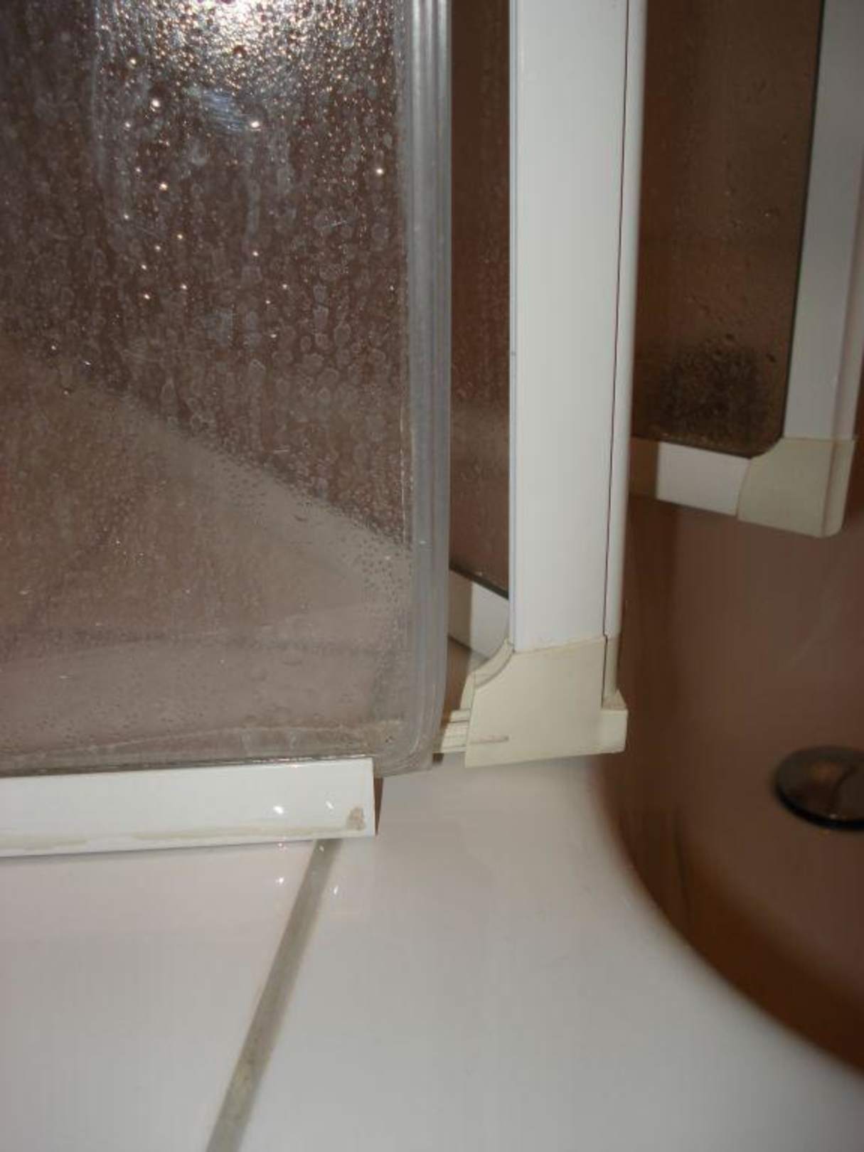 Duschkabinescharfe Kanten aus Glas und Plastik, dazu wie überall Kalk und Schimmel, schön für den Urlaub mit Kindern!