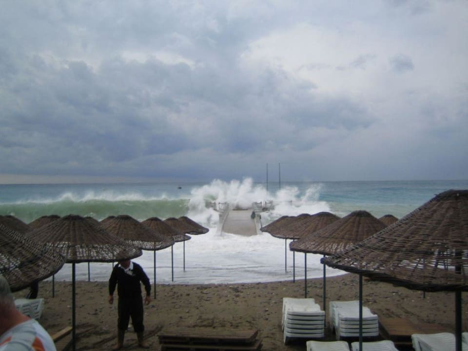 Der Steg am Hotel-Strand wurde regelrecht von den Wellen überflutet!