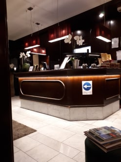 die Rezeption, rechts davon ist die Hotelbar und links ging es zum Ausgang des Hotels