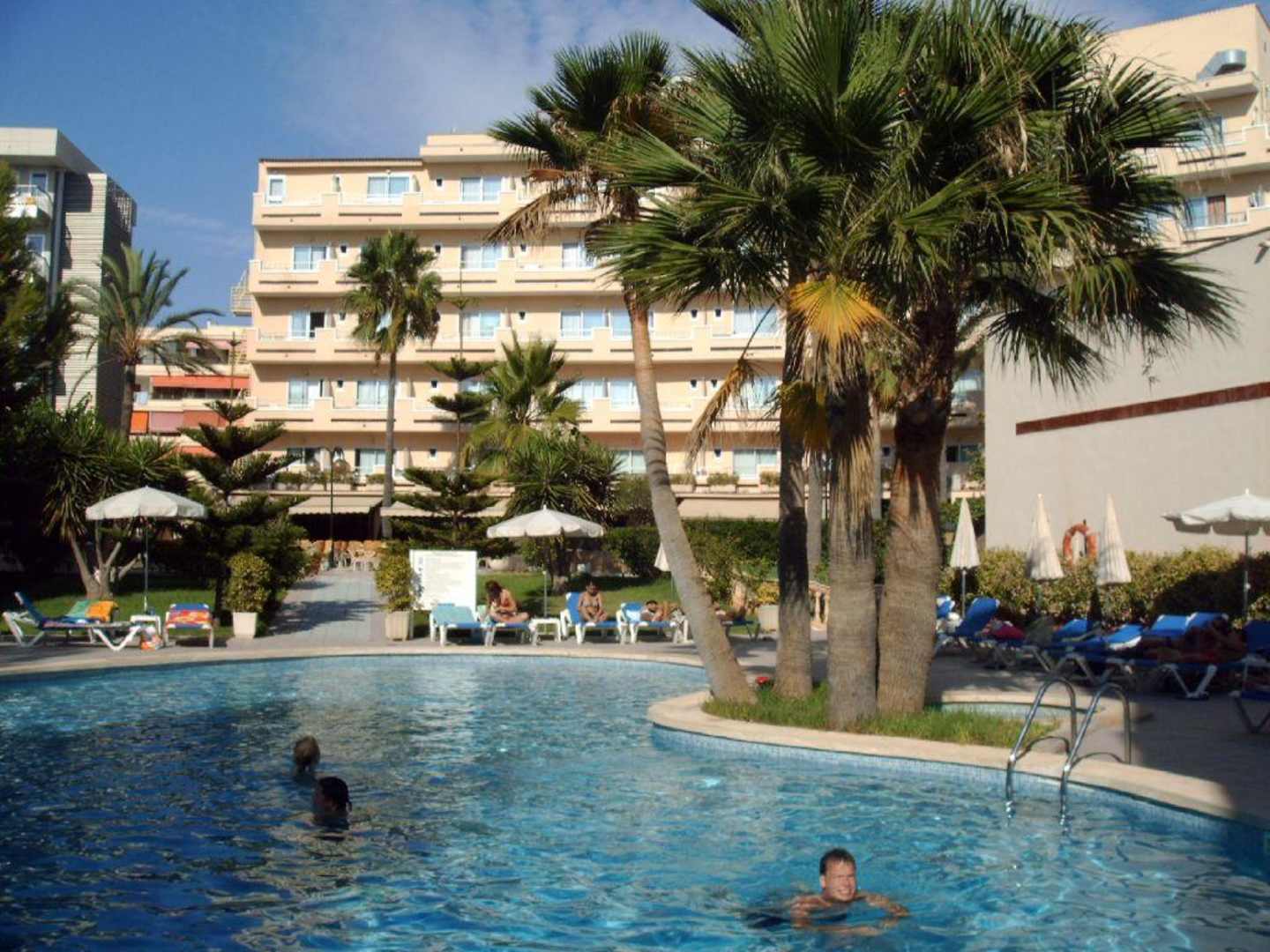 hier sieht man den Pool und im Hintergrund das Hotel