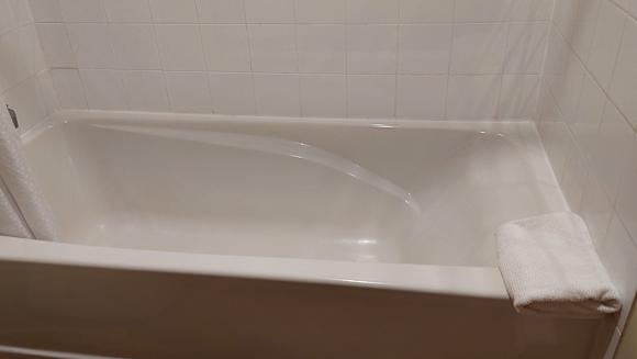 Badezimmer mit Badewanne und WC.