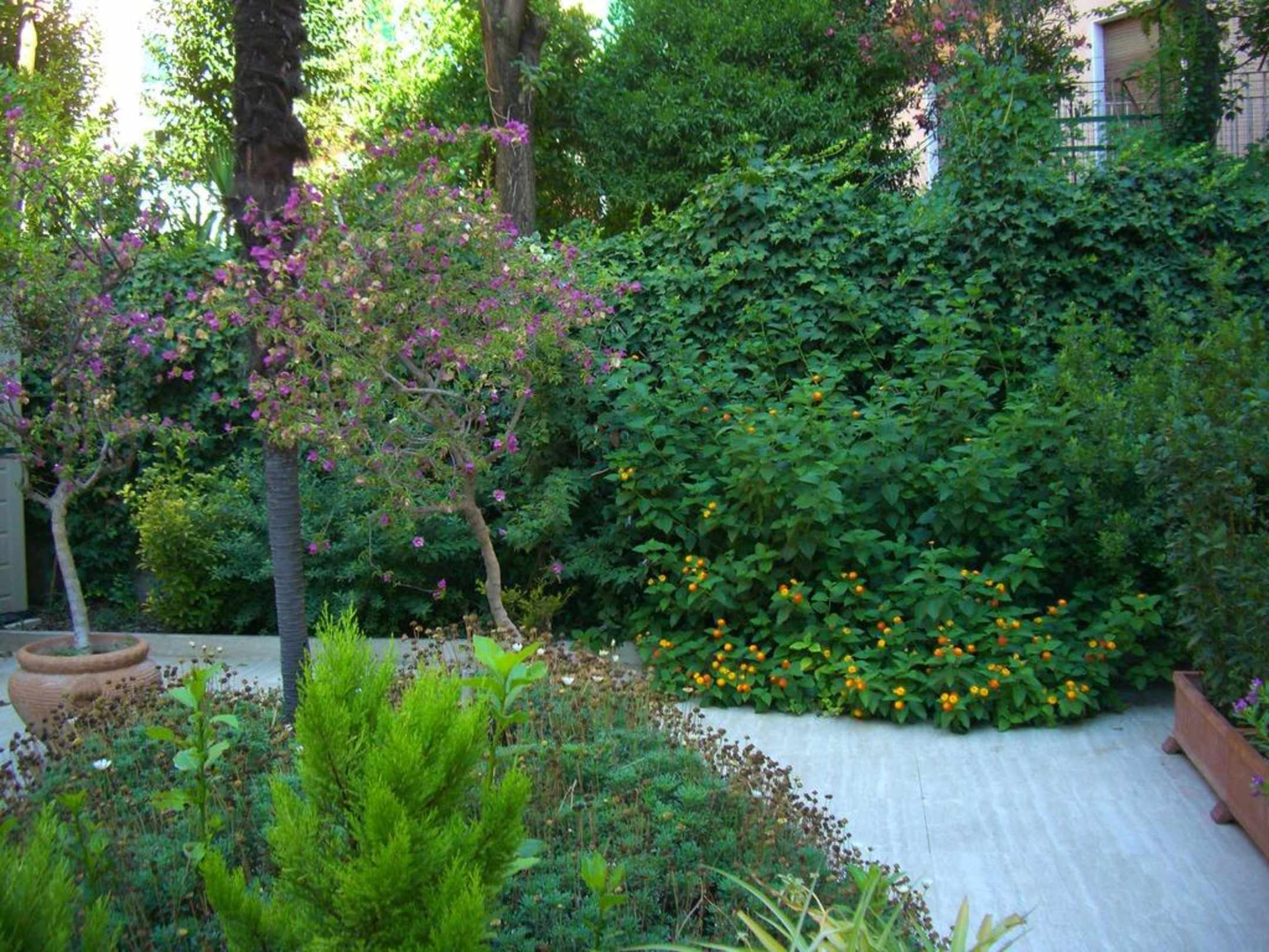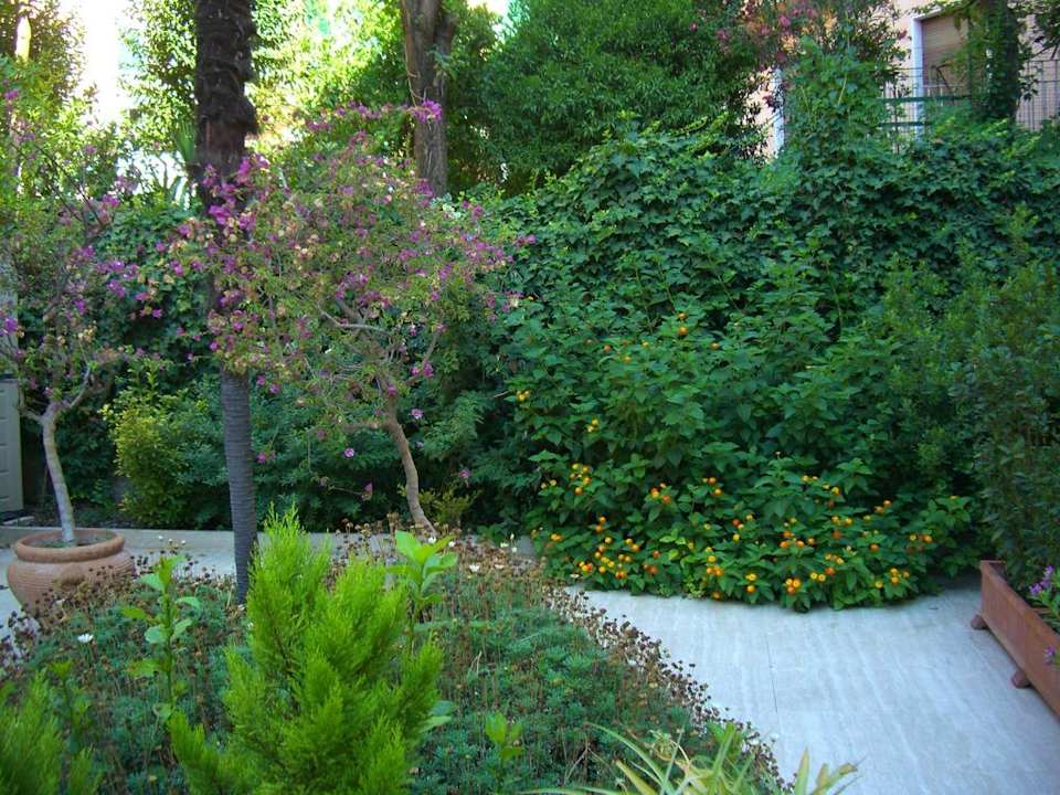 Die Sicht von der Frühstücksterrasse in den Innenhof