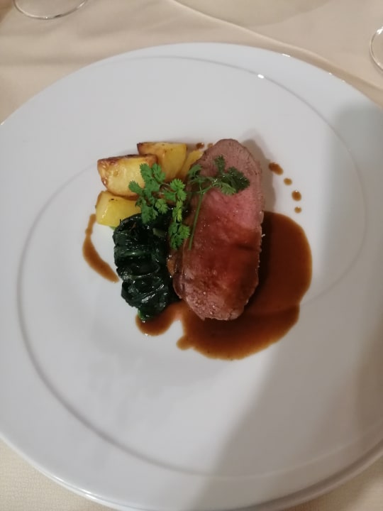 Roastbeef mit Spinat, Kartoffeln, Balsamessig-Sauce