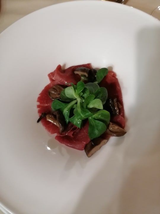 Carne salada trentina (Salzfleisch mit Shiltake Pilze in Öl)