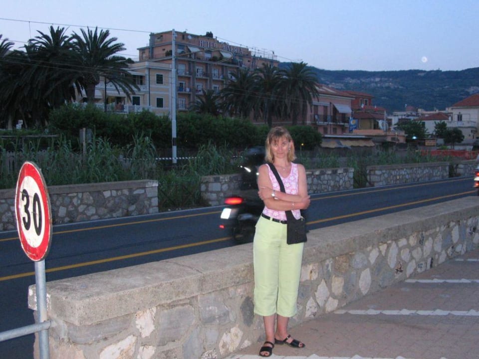 Blick auf das Hotel Minerva in Pietra Ligure am Abend