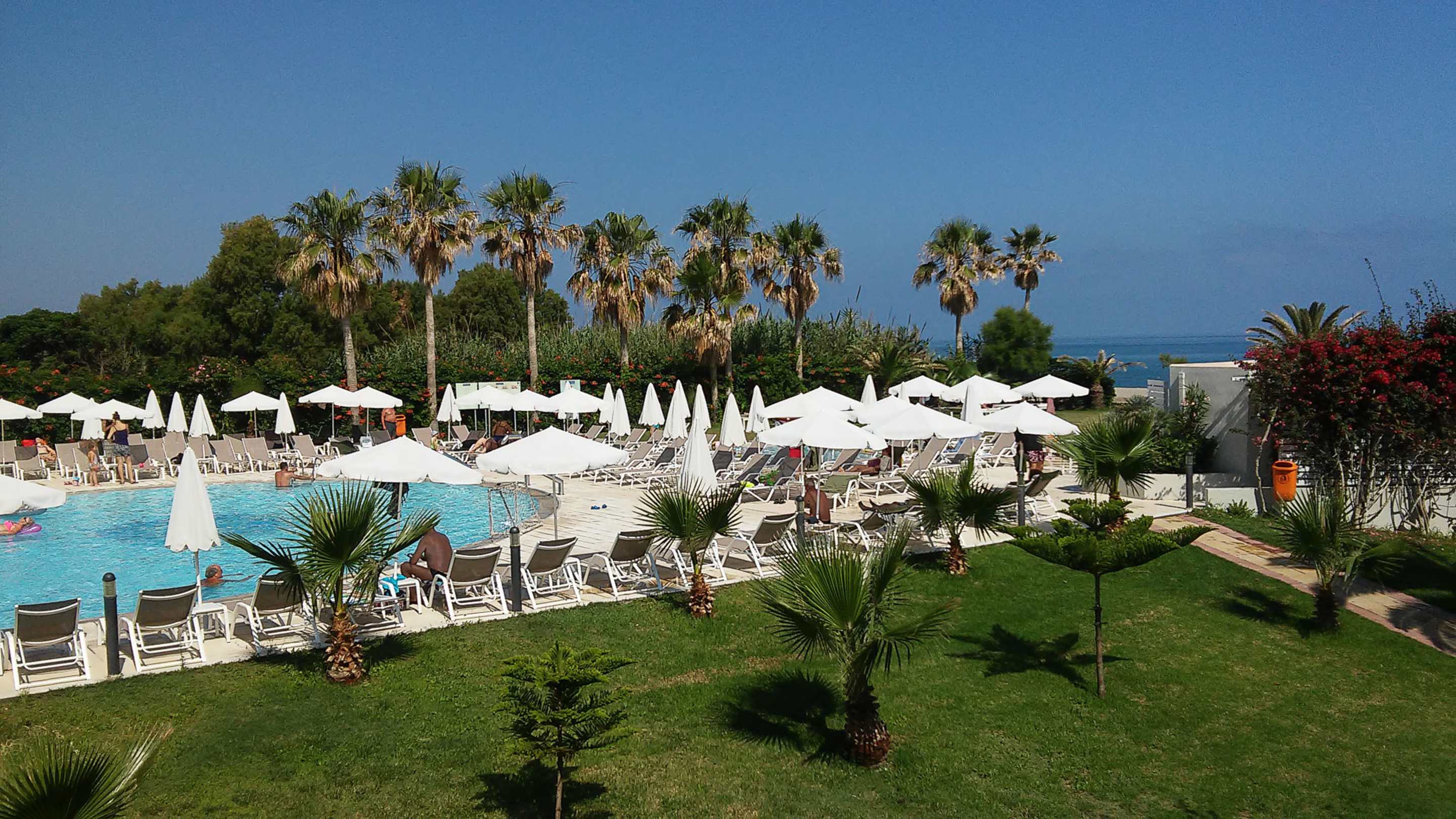 Pool, Sunbeds und Park