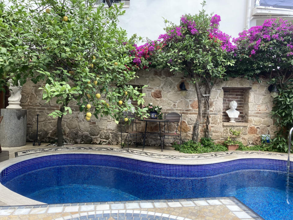 Blick vom Frühstückstisch hin zum Pool.