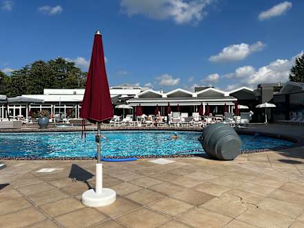 PoolWir hatten mit dem Wetter Glück gehabt so das wir draußen liegen konnten, der Innenbereich wirkt recht düster und nicht so einladend. Aus einer“ Amphore „ ergießt sich regelmäßig Wasser, ist allerdings warum auch immer mit einem Gitter geschützt.