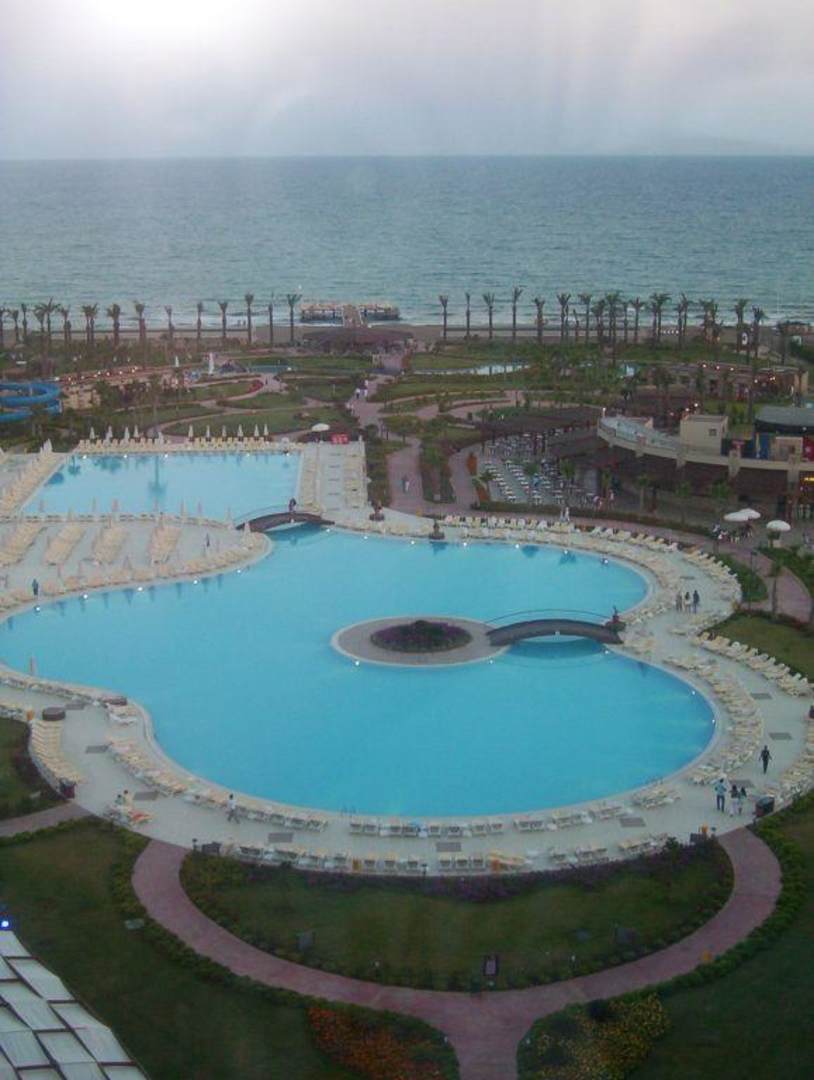 Blick auf die Poolanlage von der Panoramabar aus