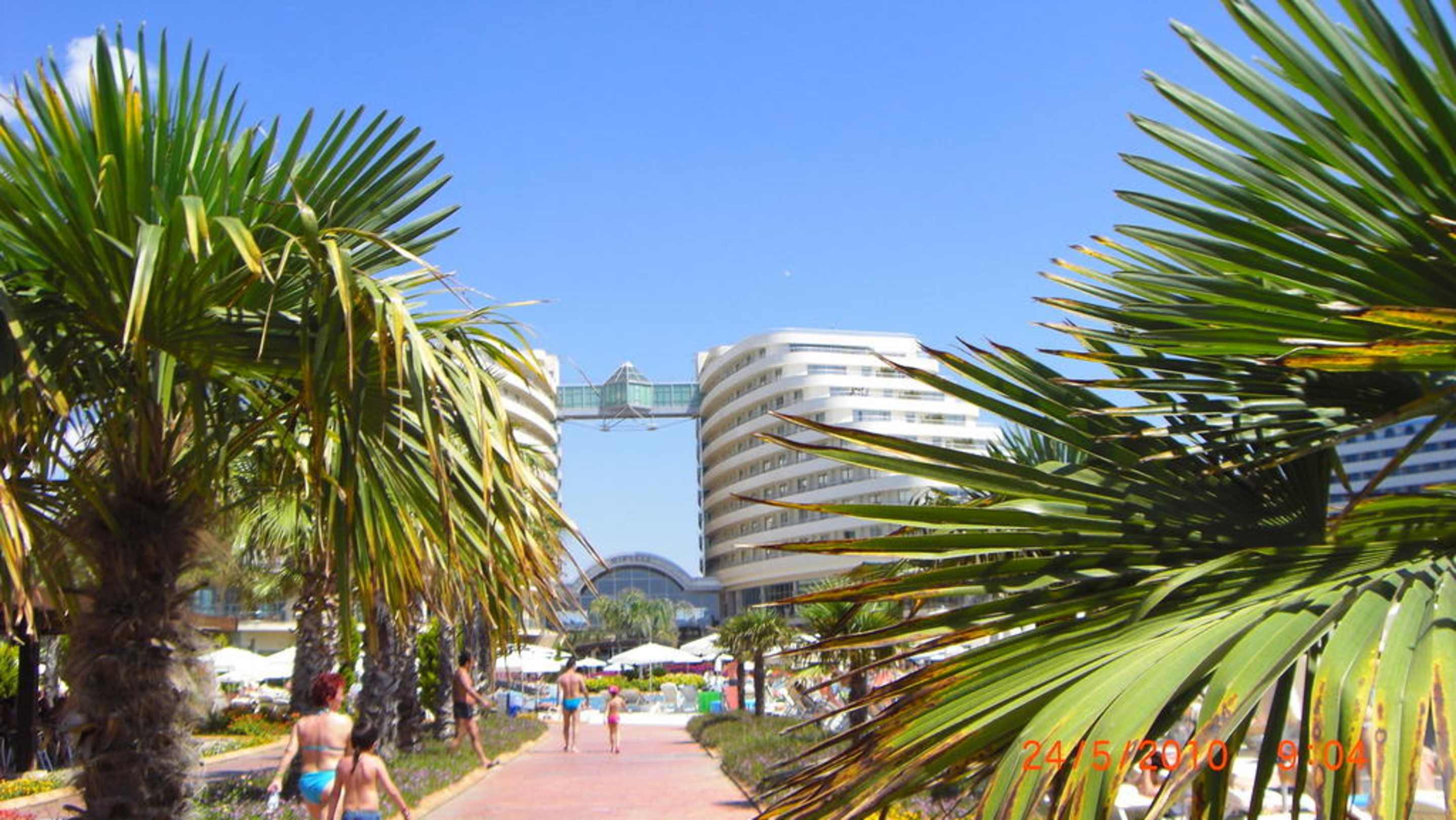 Hotel durch Palmen