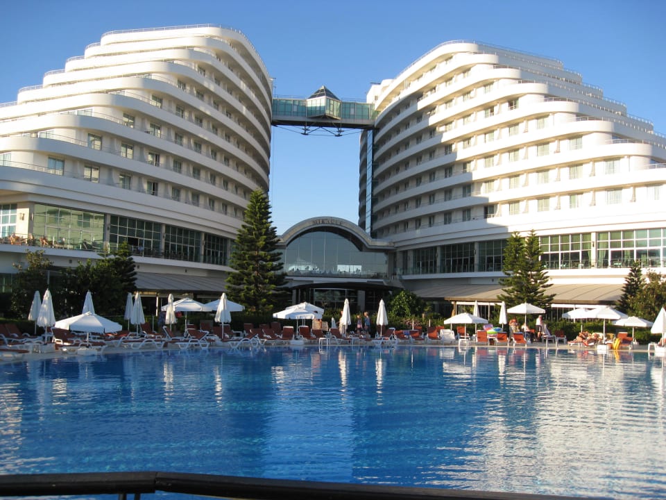 Blick auf das Hotel vom Pool aus