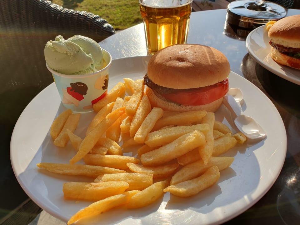GastroBurger und Pommes sowie ein Eis von den Foodständen nähe des Pools, immer frisch zubereitet und sehr empfehlenswert