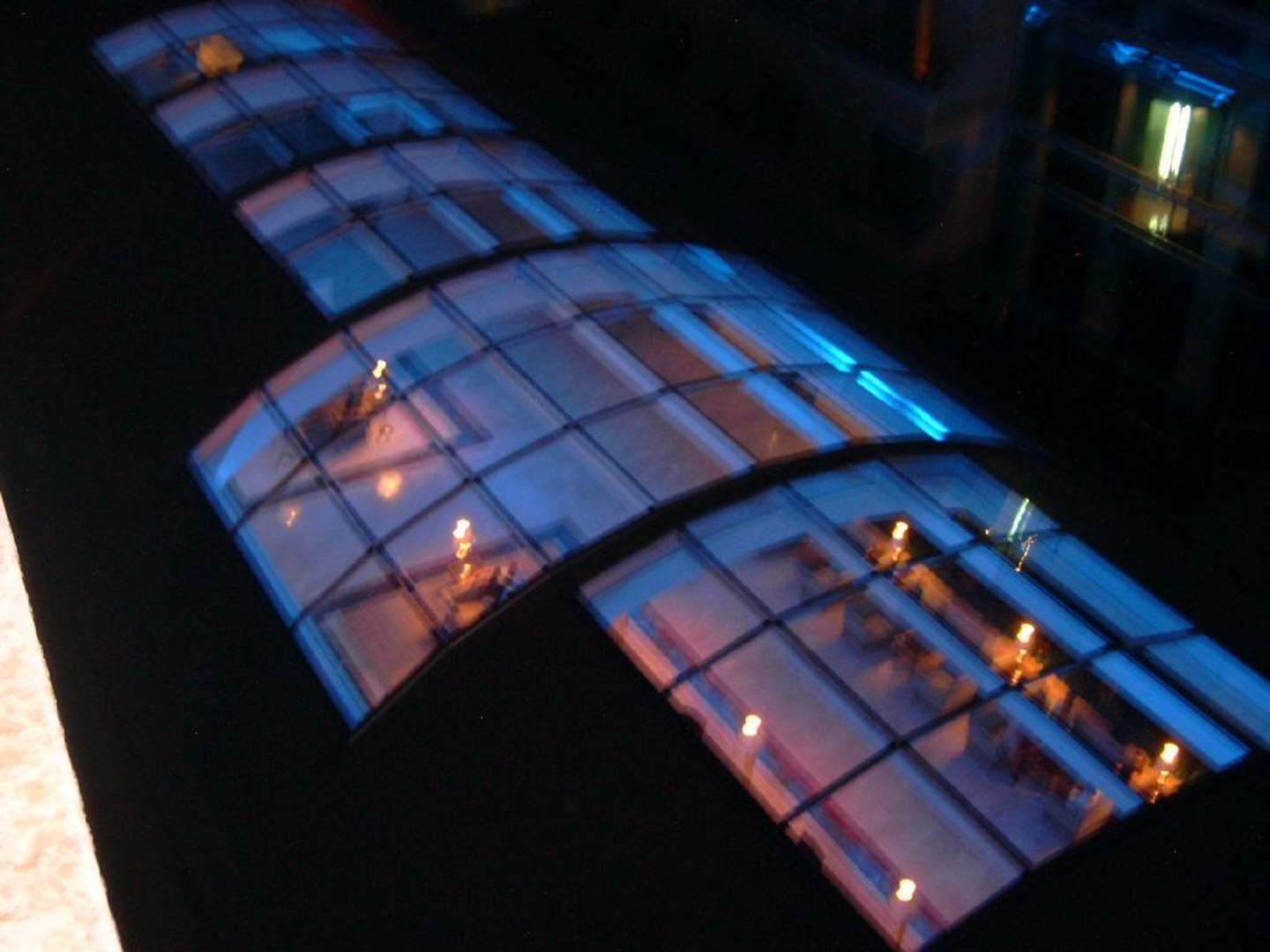 Blick auf die Kuppel der Eingangshalle am Abend