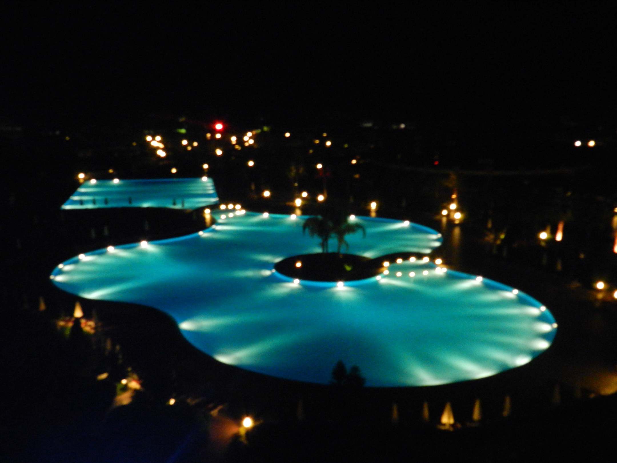 Blick auf den Pool bei Nacht