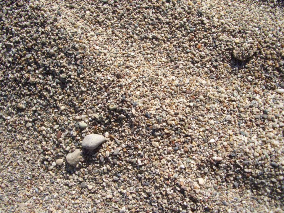 Der Strand vor dem Hotel ist ein Kiesstrand.