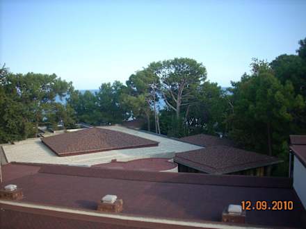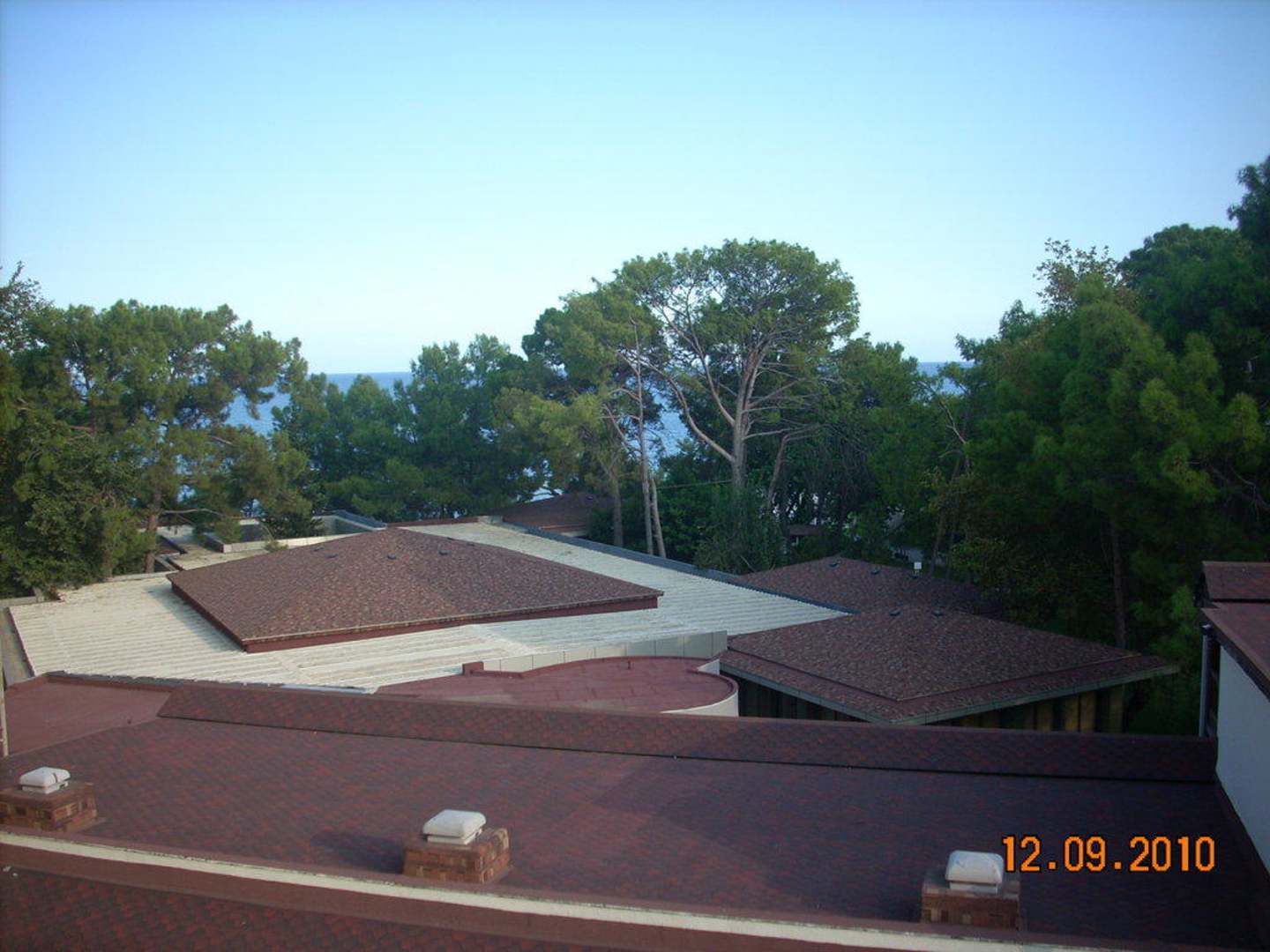 In Richtung Meer, direkt unter uns die Restaurants.