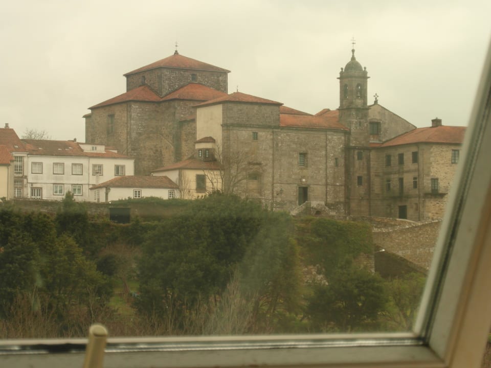 Aus dem Zimmer zum Kloster gesehen.Aussicht auf das Convento de Belvis durch das Zimmerfenster. Unterhalb vom Kloster liegt der Park.