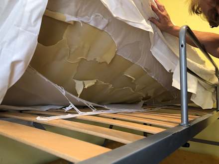 Oberer Teil des Doppelstockbettes, so sahen die Auflagen/Matratzen aus.