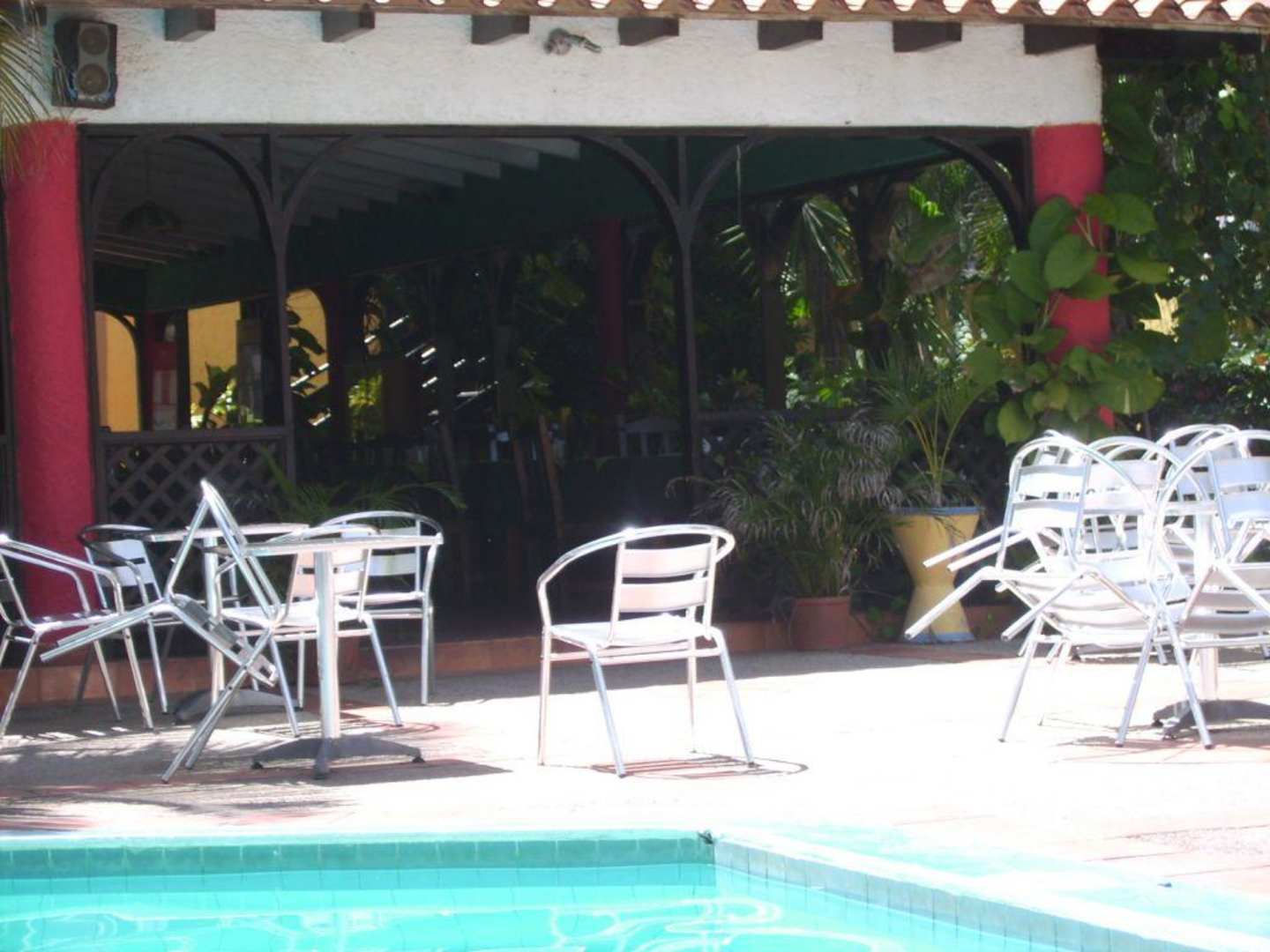 Freiluftrestaurant vom Pool aus gesehen