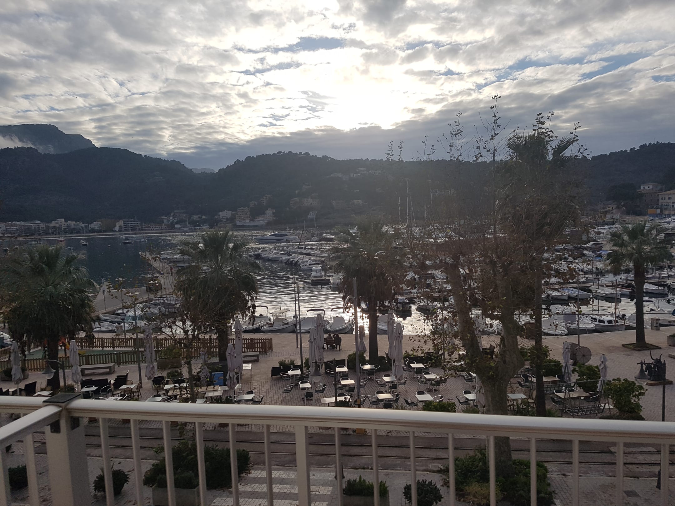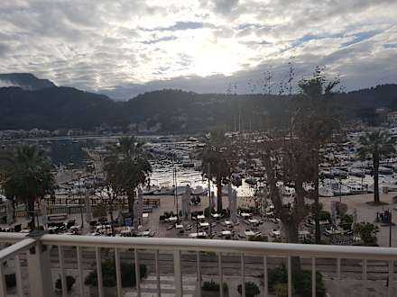 Blick vom Balkon ü. Hafen u. Bucht