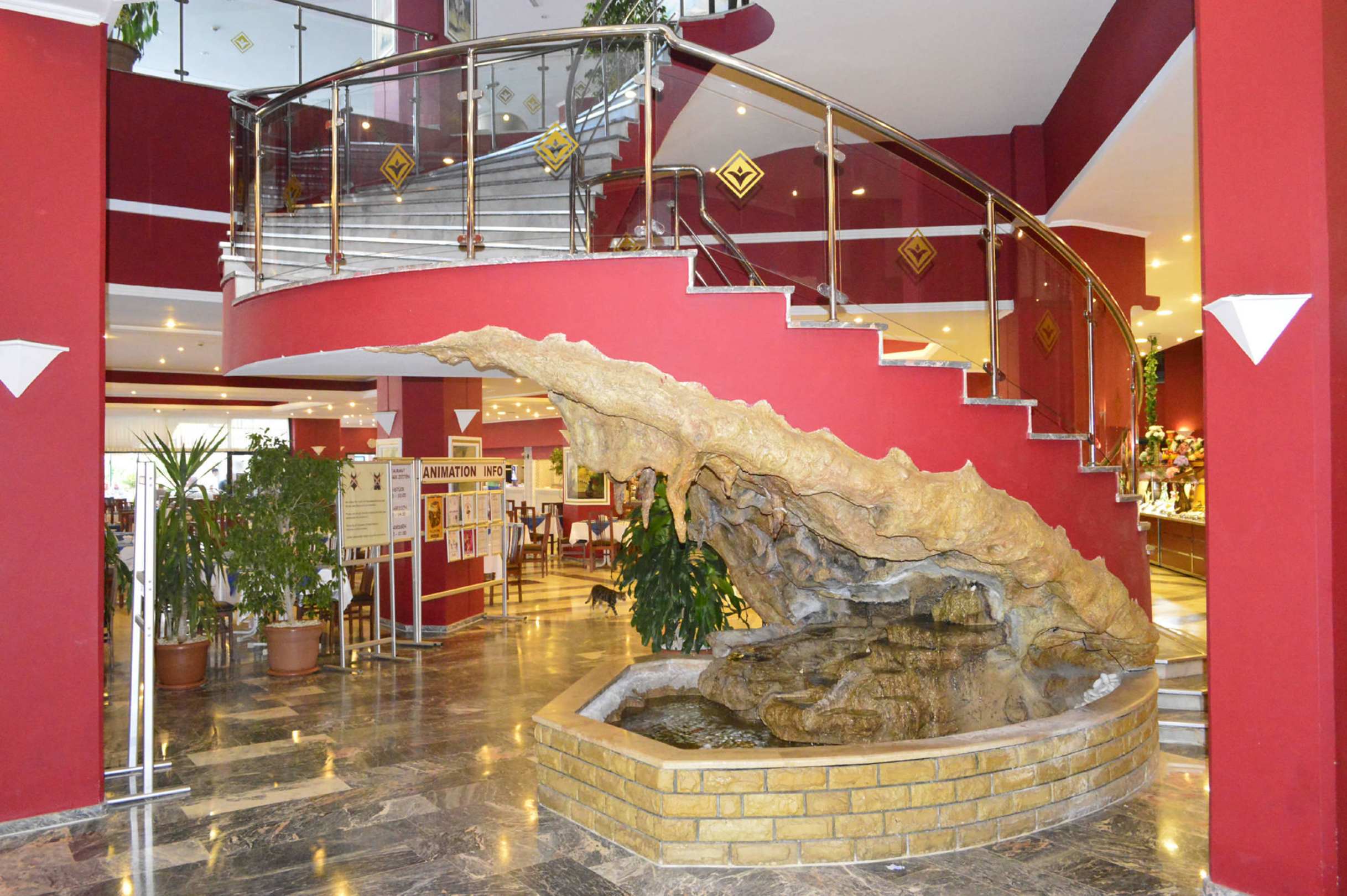 Fischteich unter der Treppe vom Restaurant