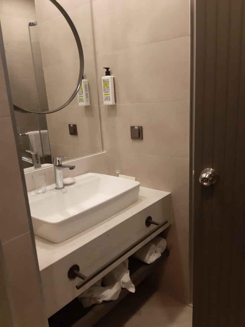 Zimmer 1, Waschbecken bei geöffneter Tür