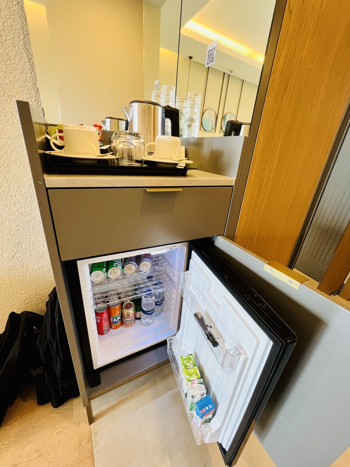 ZimmerMinibar (tägliche Auffüllung inklusive) sowie Wasserkocher mit einer Auswahl an Instant-Kaffee und Tees