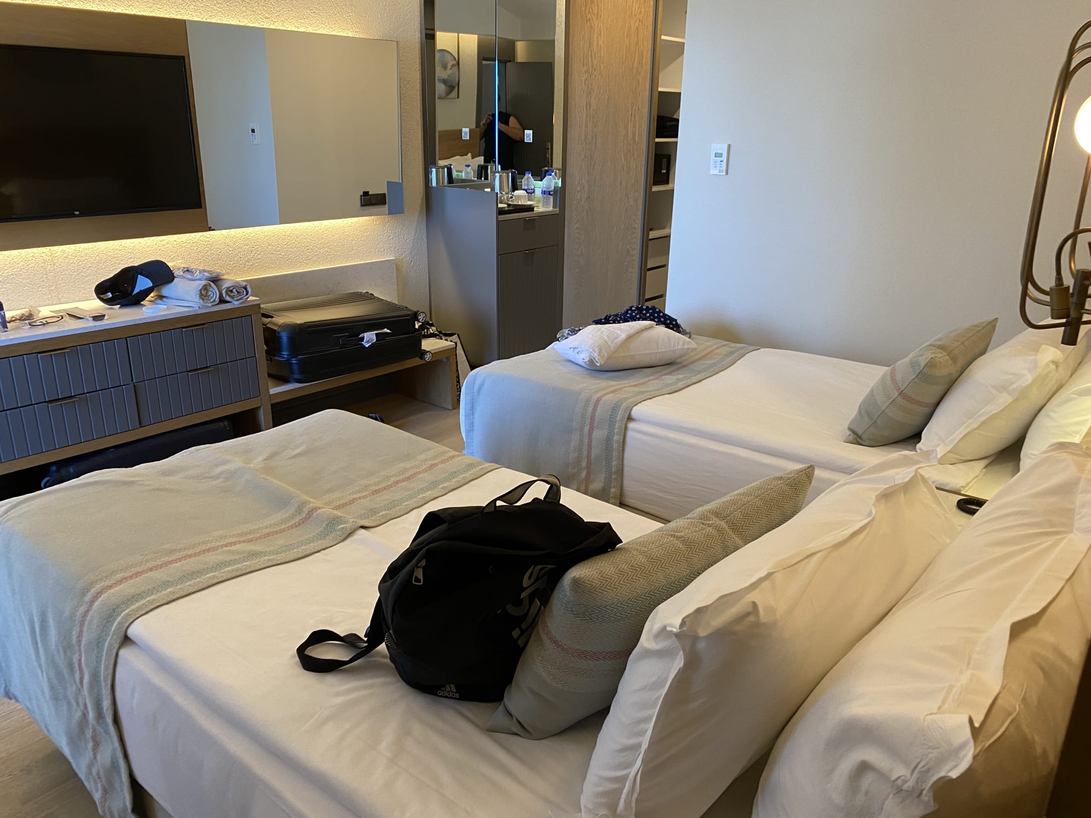 Familienzimmer in der 5. Etage mit Meerblick. Zwei Bäder, zwei Balkone.