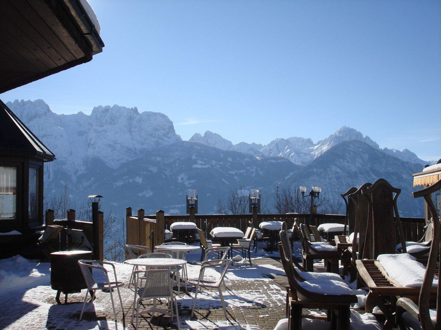 Sonne und Schnee auf der Terrasse