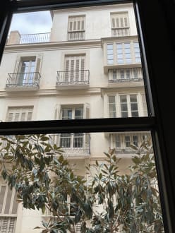 Außenansichtvon der Gasse aus Calle Bolsa sieht man, wie verschieden die Zimmer sind. Mit oder ohne Erker, mit oder ohne Balkon.