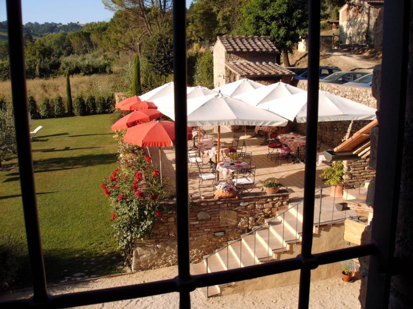 zicht vanuit de badkamer