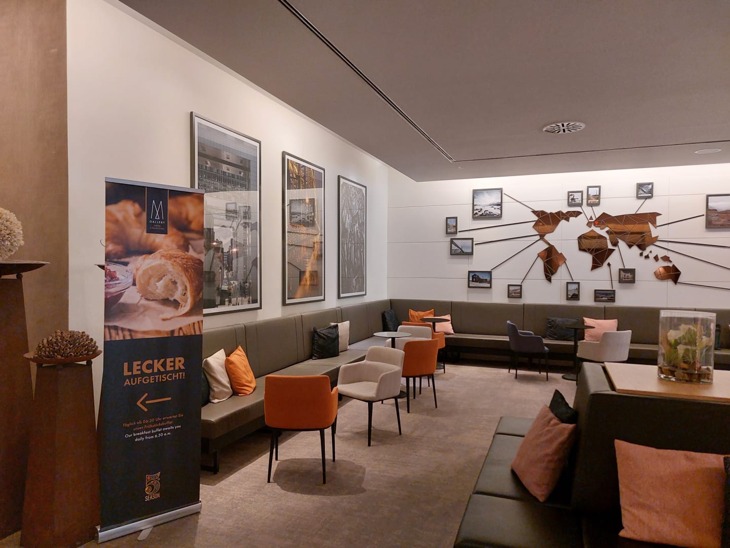 Sitzgelegenheiten im hinteren Bereich der Lobby.