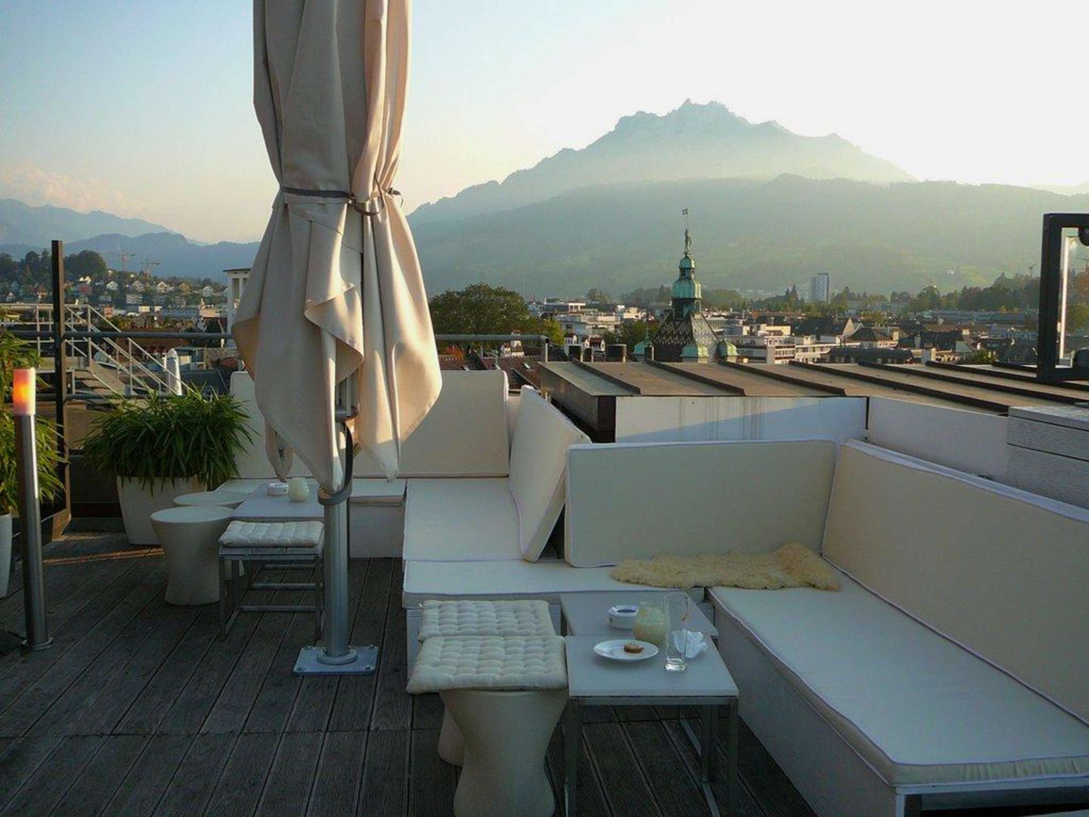 Blick von der Dachterrasse auf den Pilatus.