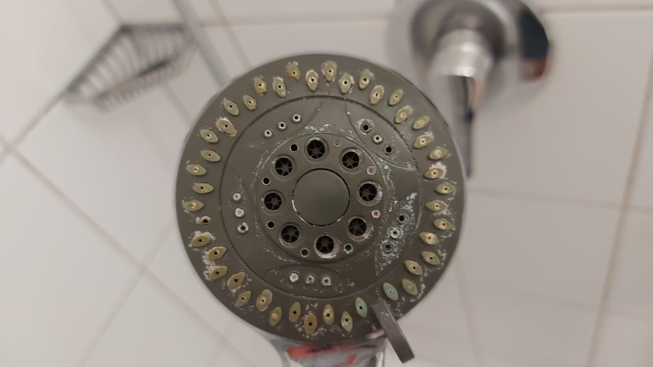 Völlig verdreckter Duschkopf. Ein No-Go!