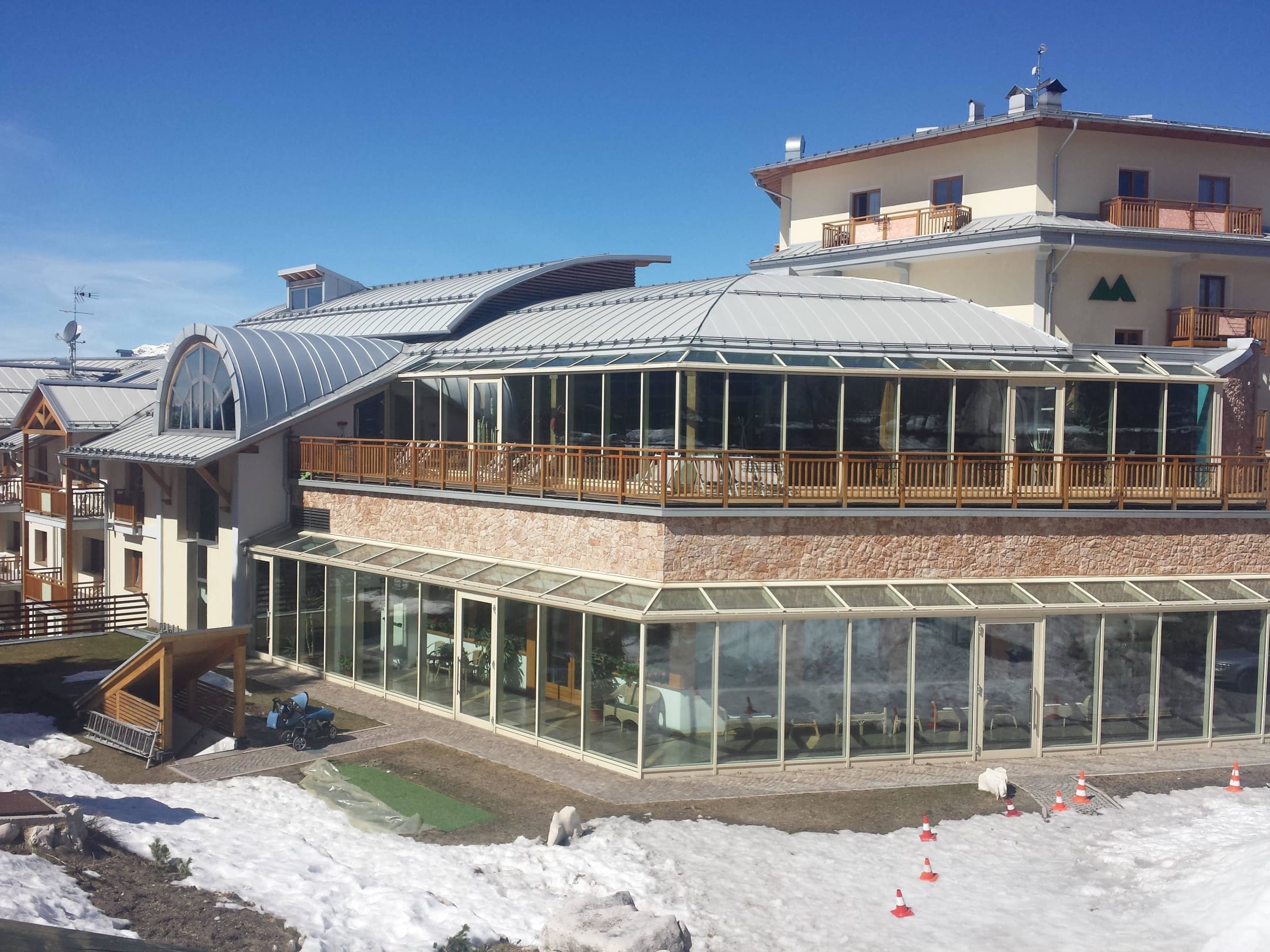 Vista dall'esterno vetrata piscina secondo piano