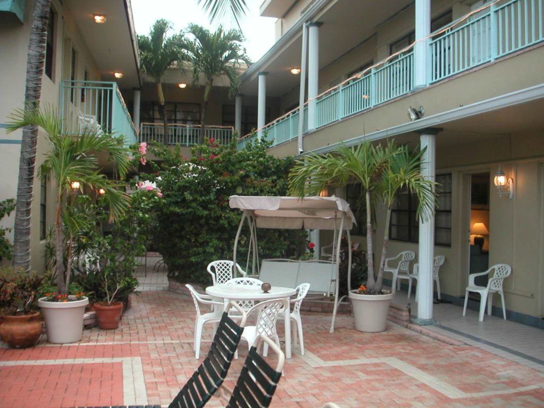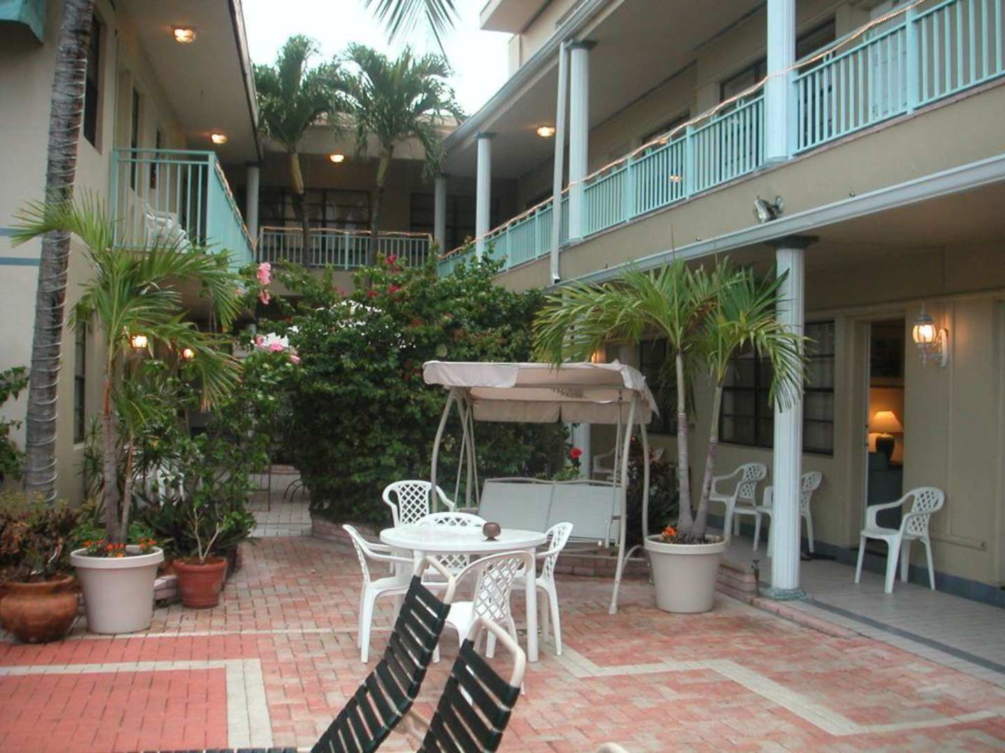 Blick vom Poll aus zu den Zimmern.