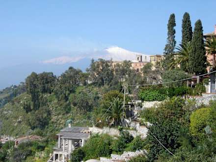 Ätna vom Hotel Monte TauroBei klarem Wetter sieht man direkt den Ätna (Aufnahme vom April mit Schnee).