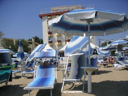 Unsere Liegen des Hotels MontecarloLeider kann man das Hotel nicht allzugut erkennen - aber vielleicht ist es doch ein wenig hilfreich.