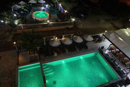 Aussenpool und Whirlpool abends