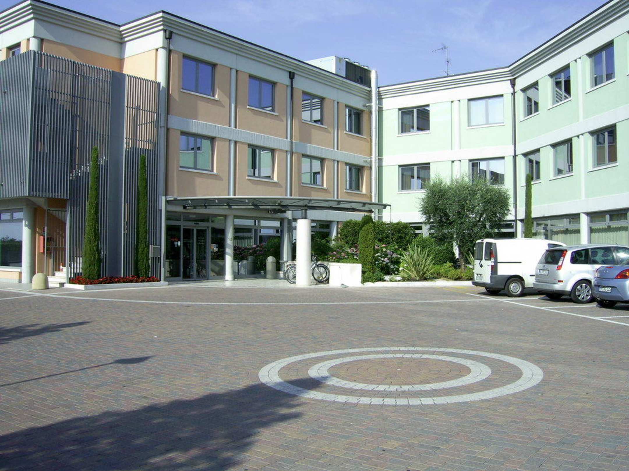 Parkplatz vor dem Hotel und Eingangsbereich