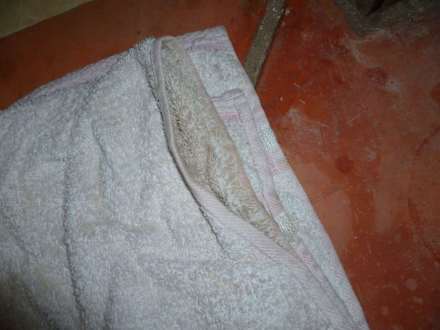 Handtuch am Boden vor dem Badezimmerbei unserer Ankunft, und.- da ist keiner von uns darauf getreten :-(