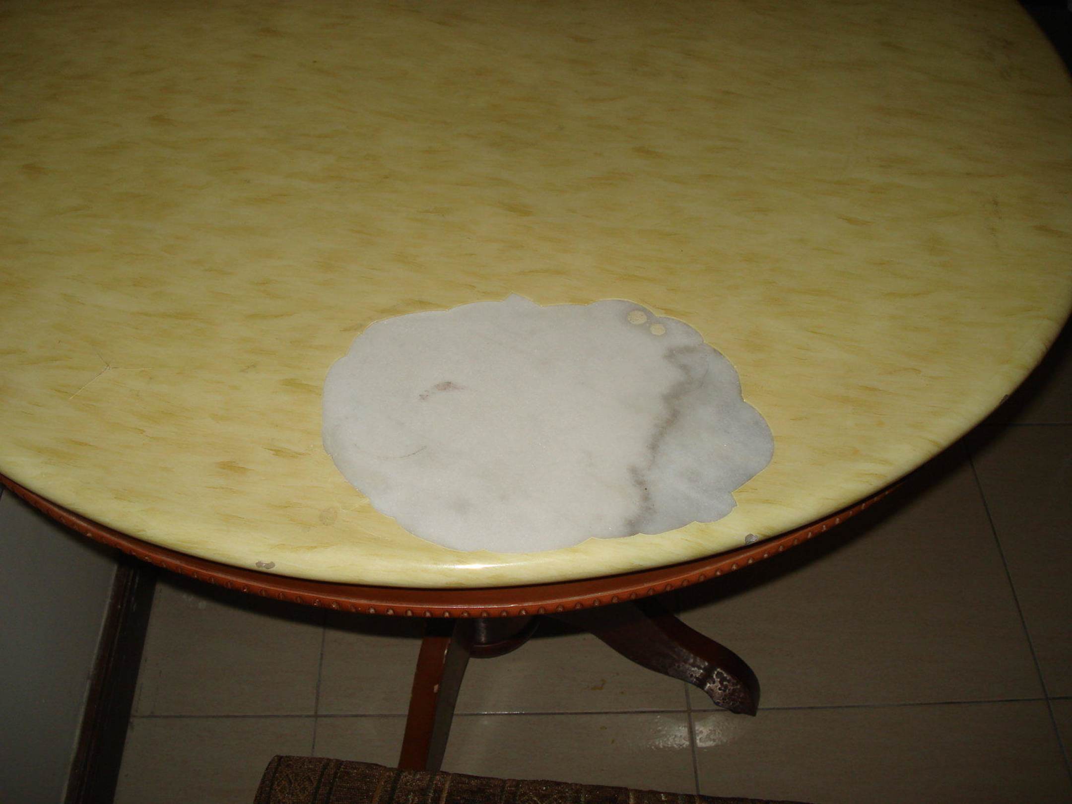 Abgeplatzte oberschicht auf esstisch